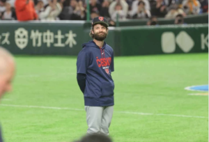 グランドでは、ヒーローインタビューが始まり、終わり、日本選手は