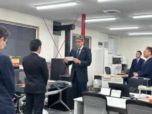 TREホールディング会長からの訓示を、林社長が代読し社員にお伝えしました